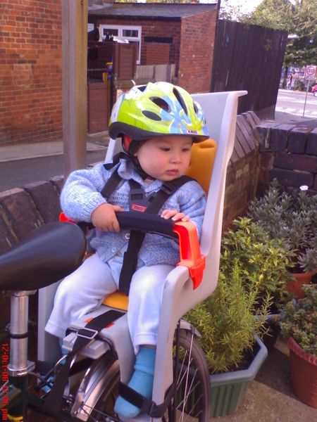 坐在爸爸騎的單車後座